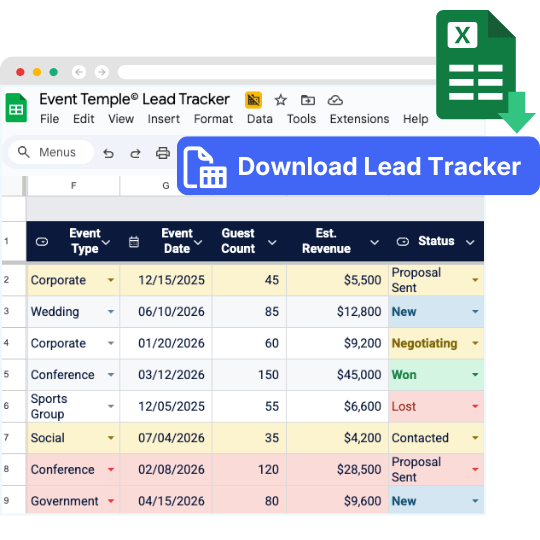 Knowing where leads come from is only half the battle. Tracking them in one place is what separates hotels that win business from hotels that lose leads between systems. Our free Lead Tracker Template for Hotels and Venues helps you centralize every inquiry with a visual dashboard, smart conditional formatting, and fields built for hospitality sales.